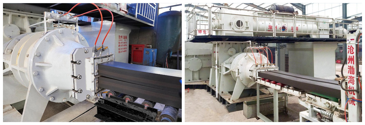 本機擠出壓力大,真空度高,擠出泥條密實,外觀整潔。完全適合一次碼燒工藝的要求,生產率高,成型含水率低,降低了在生產中的能耗和損失。是生產全煤矸石、高摻量粉煤灰、頁巖以及劣質沙土磚的理想設備。