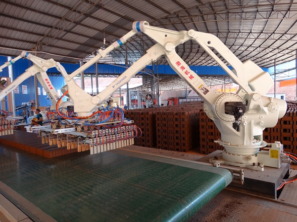 渤海機械公司的工業智能機器人自動切碼翻系統具有伺服電機驅動,自動化程度高,碼坯工藝簡潔,運行平穩可靠、能耗低,節省空間,現場適應性強,可抓多種磚型。